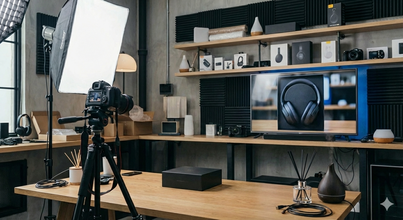 Our Unboxing Studio is a clean, camera-ready space designed specifically for creating high-quality product unboxing videos and photos. With well-balanced lighting, clutter-free aesthetics, and versatile backdrops, the studio helps highlight packaging details, product features, textures, and brand elements effortlessly.The layout allows smooth camera movement, top-angle and front-angle shots, and seamless transitions from box opening to product reveal.The layout allows smooth camera movement, top-angle and front-angle shots, and seamless transitions from box opening to product reveal.